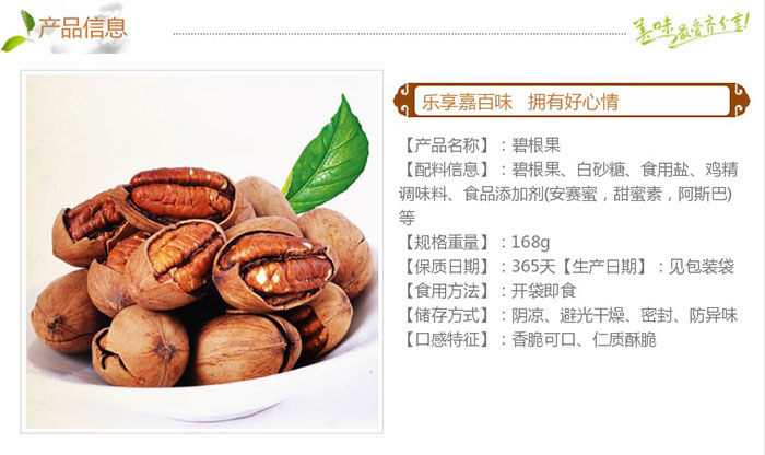配料表: 精选碧根果、白砂糖、食用盐、味精、天然香辛料。